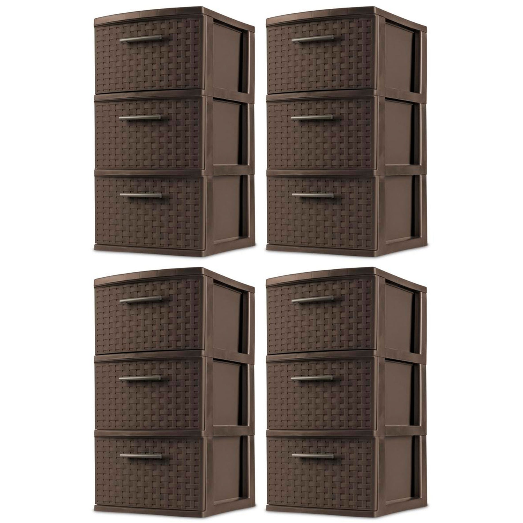 Sterilite 3 Drawer Decorative Plastic Weave Storage Tower, 4-Pack, Espresso