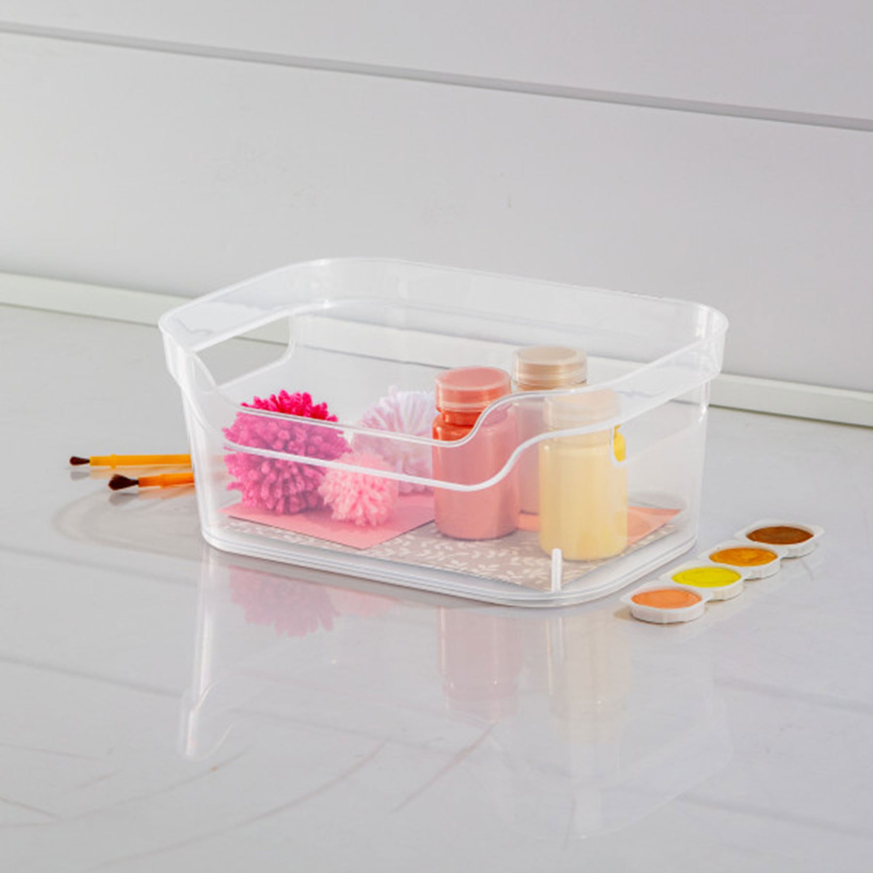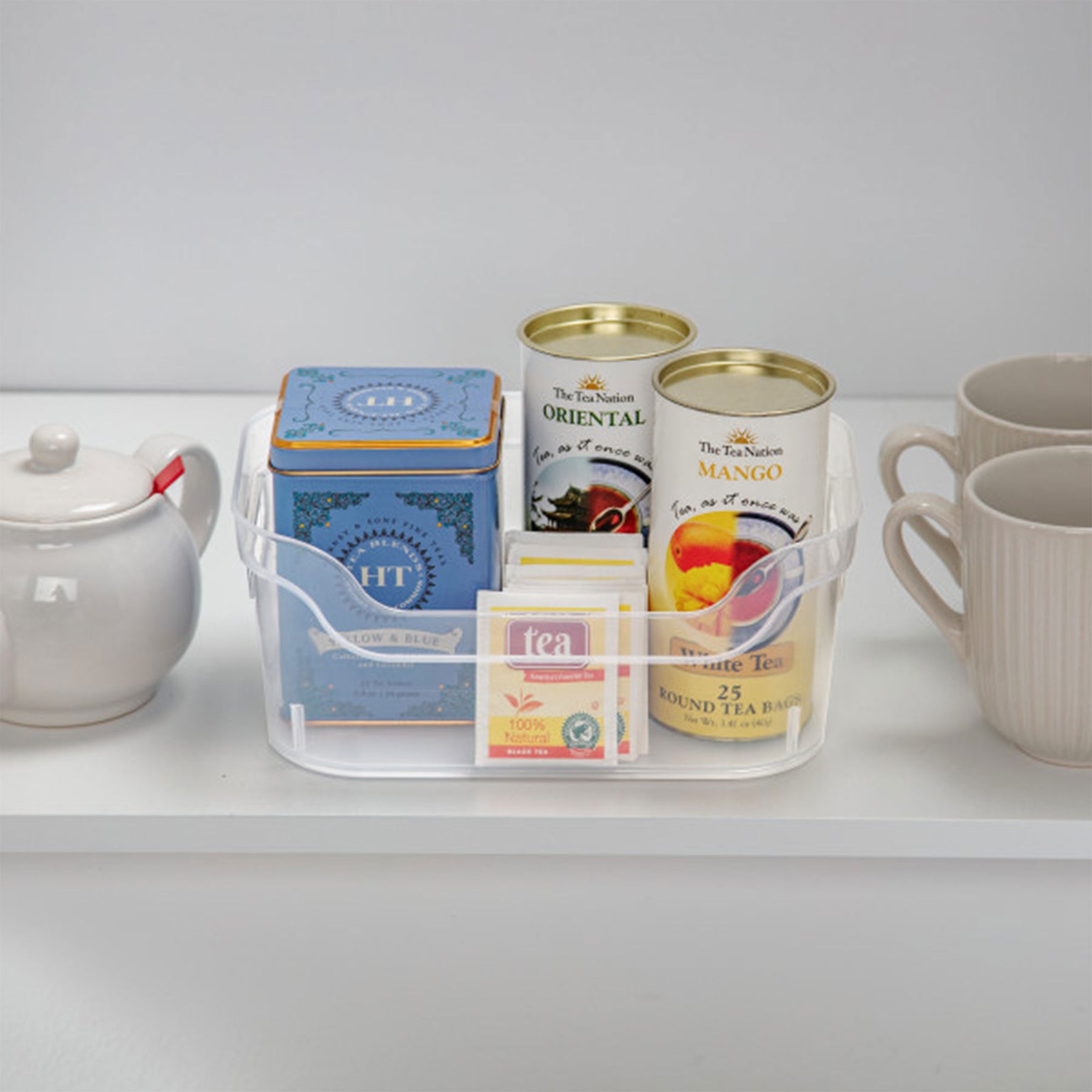 These multipurpose bins provide the ideal space to store household items. Designed to help keep your frequently used belongings close at hand, from shower supplies in your dorm room to cereal boxes and canned goods in the pantry, you'll love the simple organization these bins provide. The open design with a scoop front gives you easy access to items, and the carry-through handles make for comfortable transport, making the storage bins ideal for everyday use.
