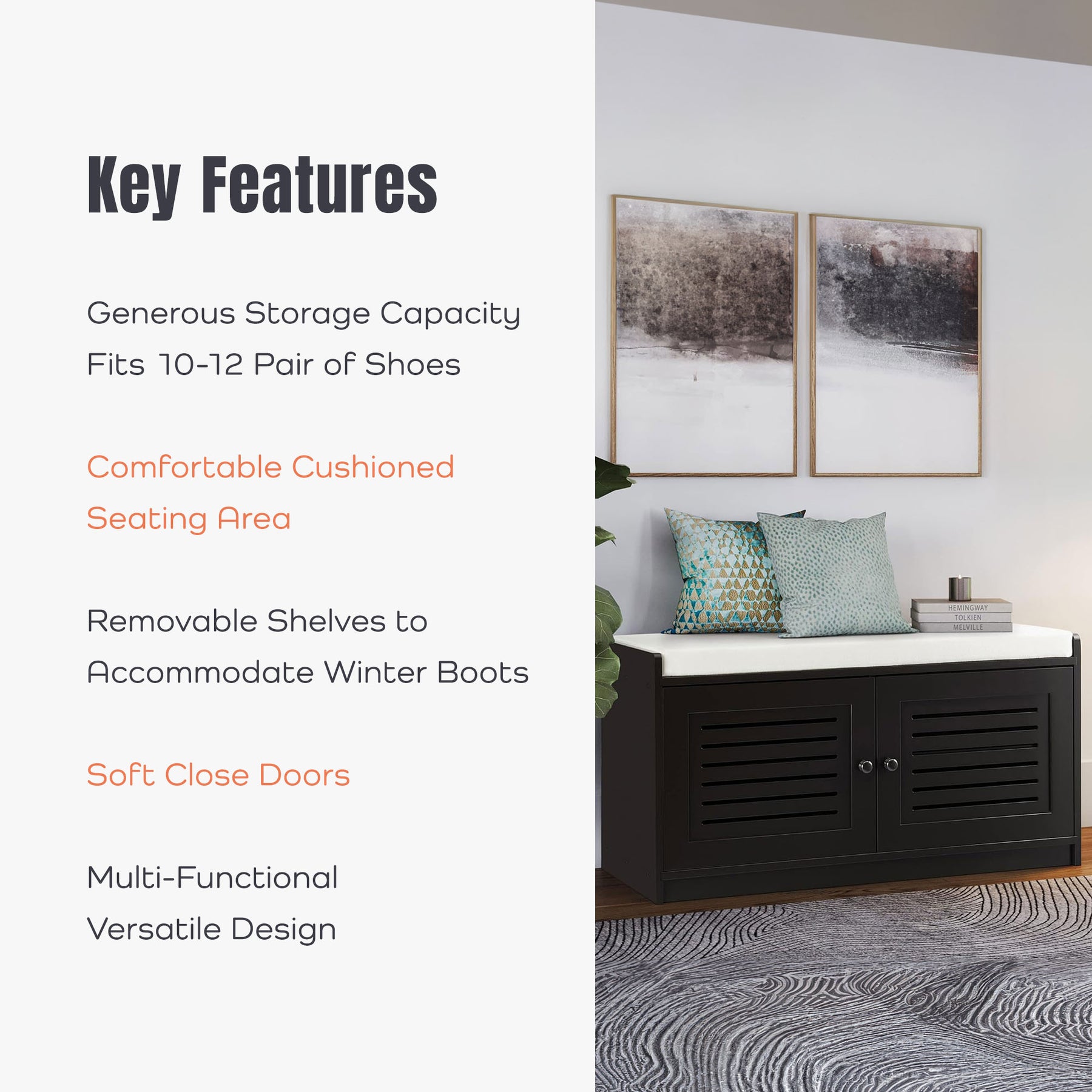 • Capable of storing between 10 to 12 pairs of shoes, this bench ensures that your area remains orderly and well-organized