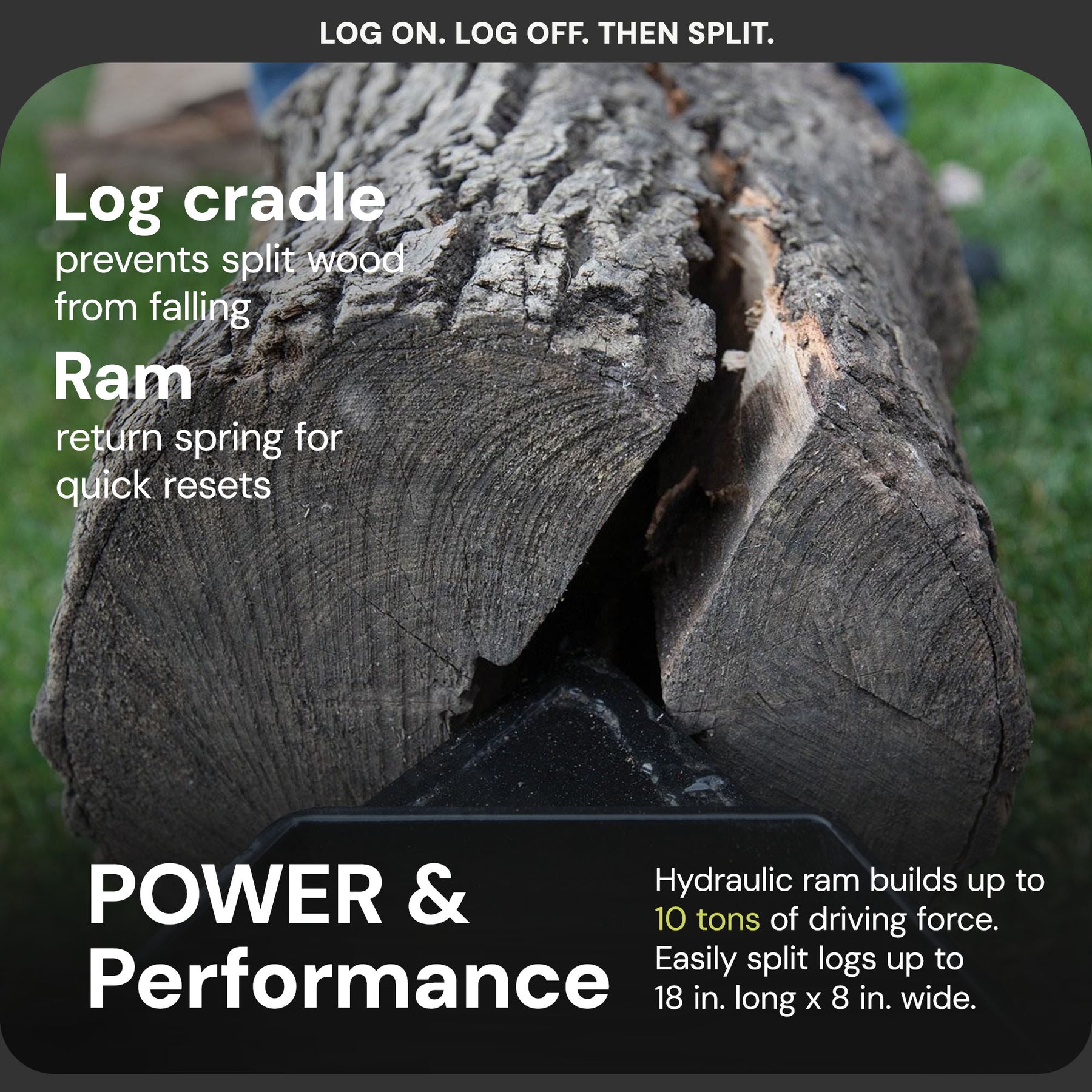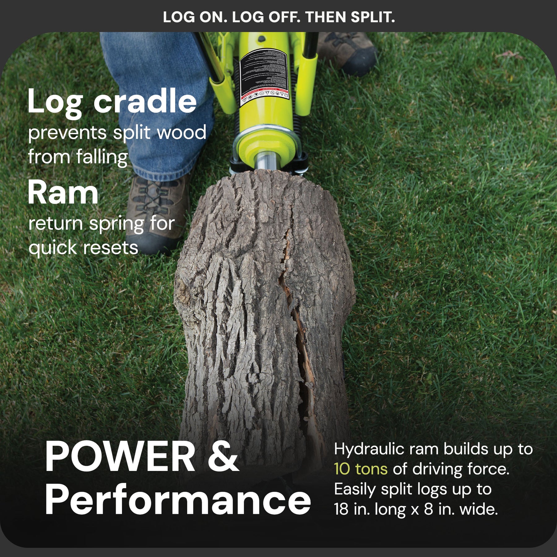 • Generates up to 10 tons of hydraulic force for efficient log splitting