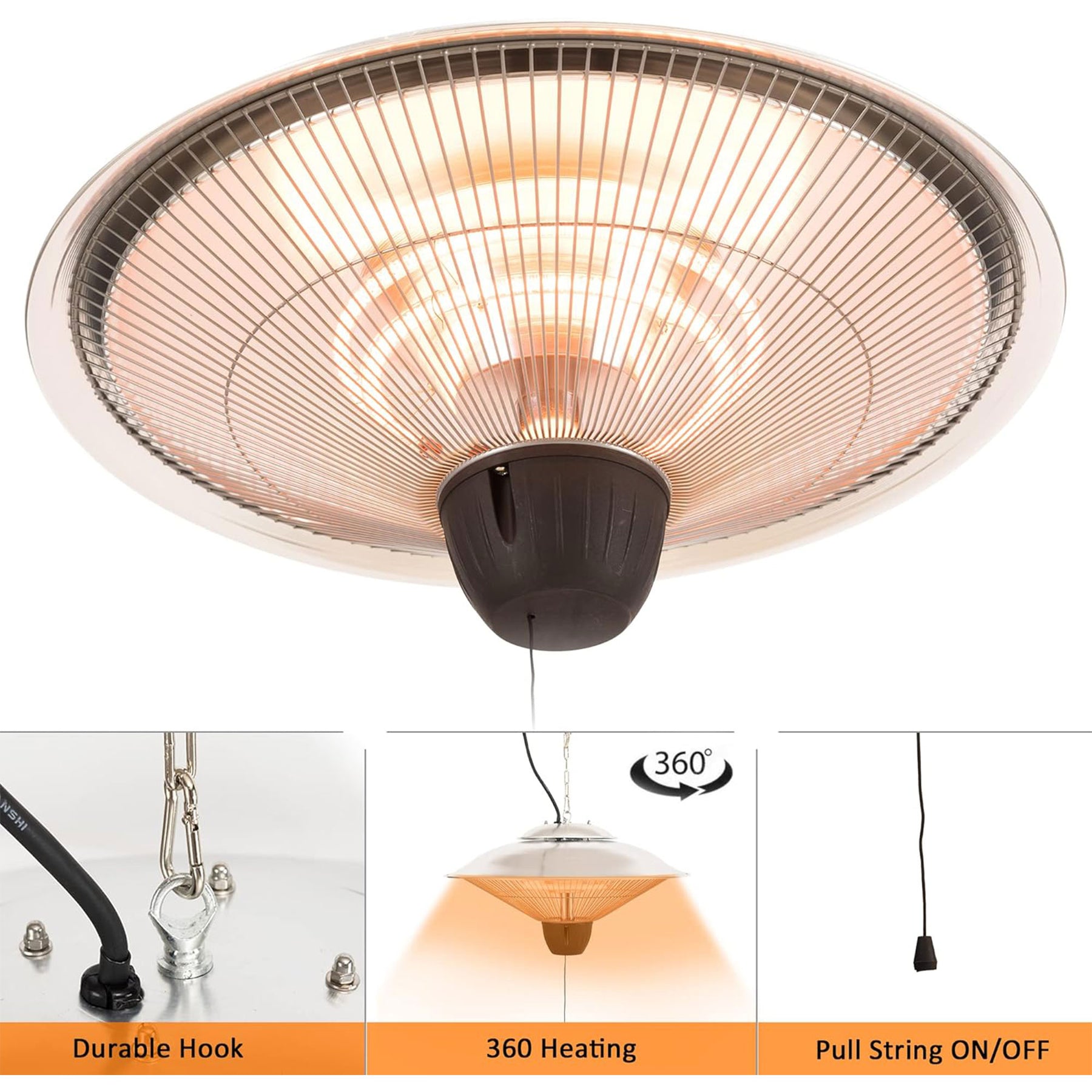 Sun-Ray 1500W Hanging Infrared Space Heater, Indoor/Outdoor, Silver (Open Box)