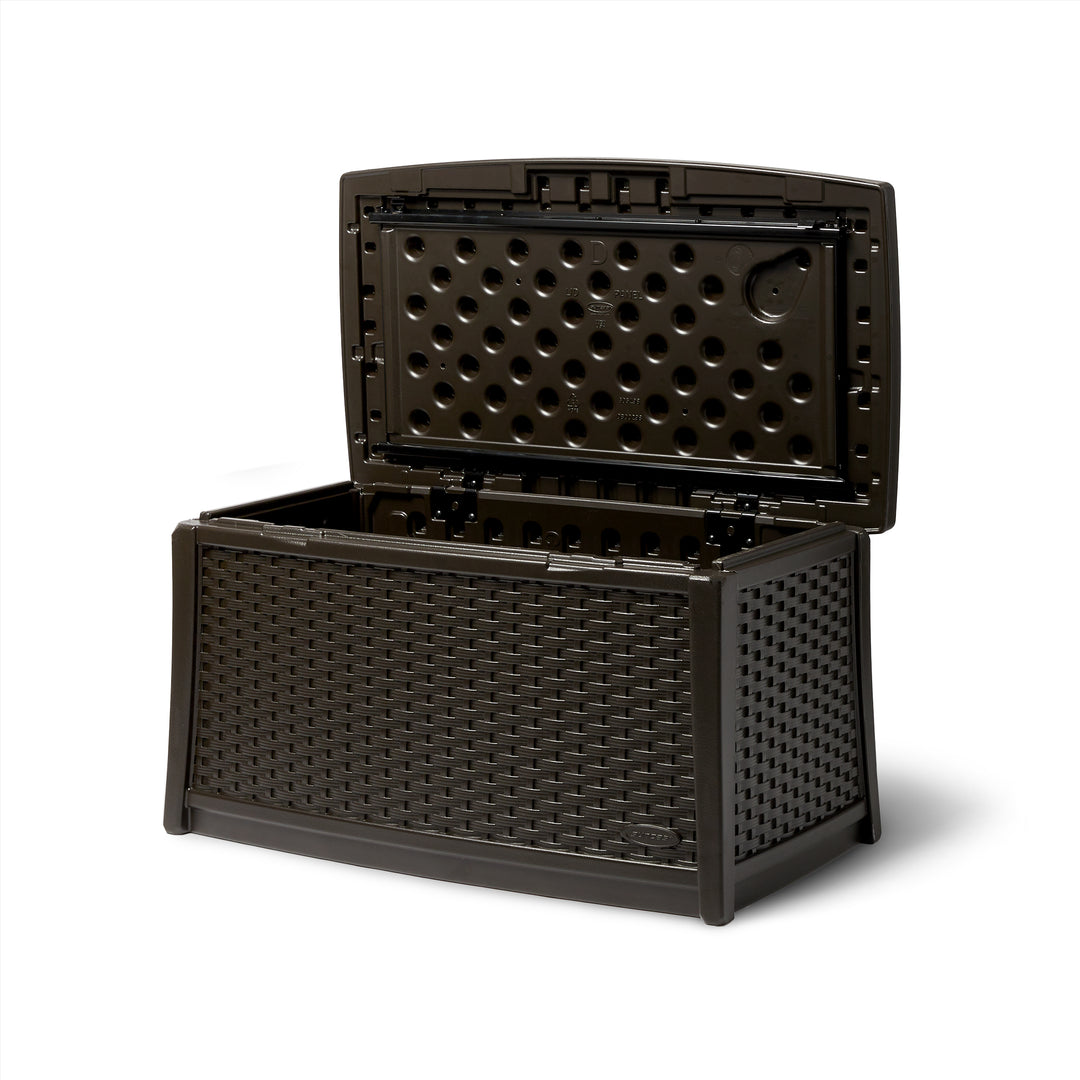 For your backyard cocktail parties, storing swimming pool toys, or keeping your outdoor cushions in the best of shape, the Suncast Elements Resin Wicker Coffee Table is your hero.