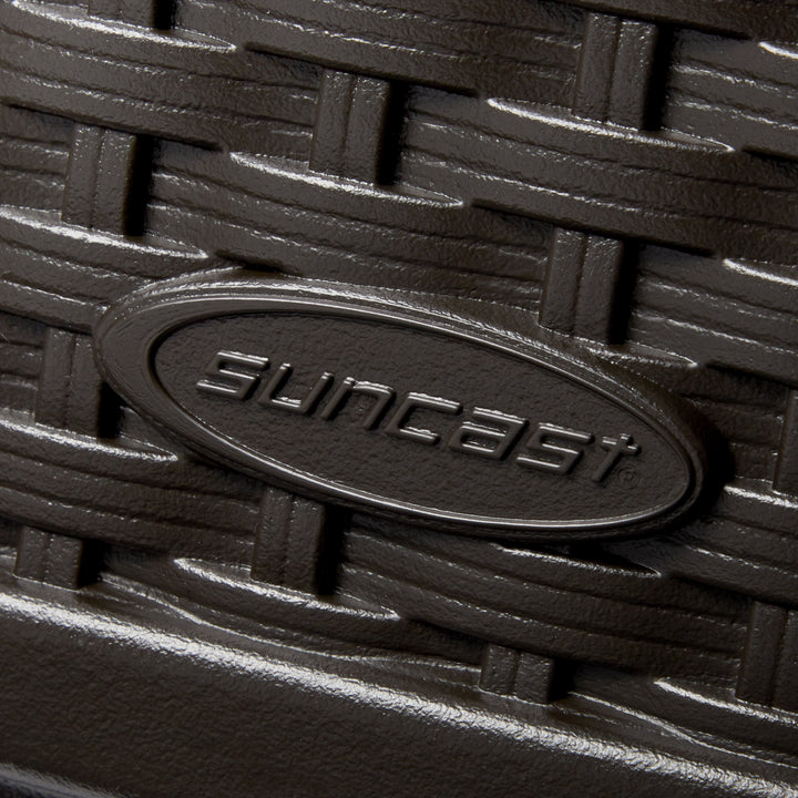 Add a splash of java and lots of storage to your patio party with this Suncast Elements Resin Wicker Coffee Table.