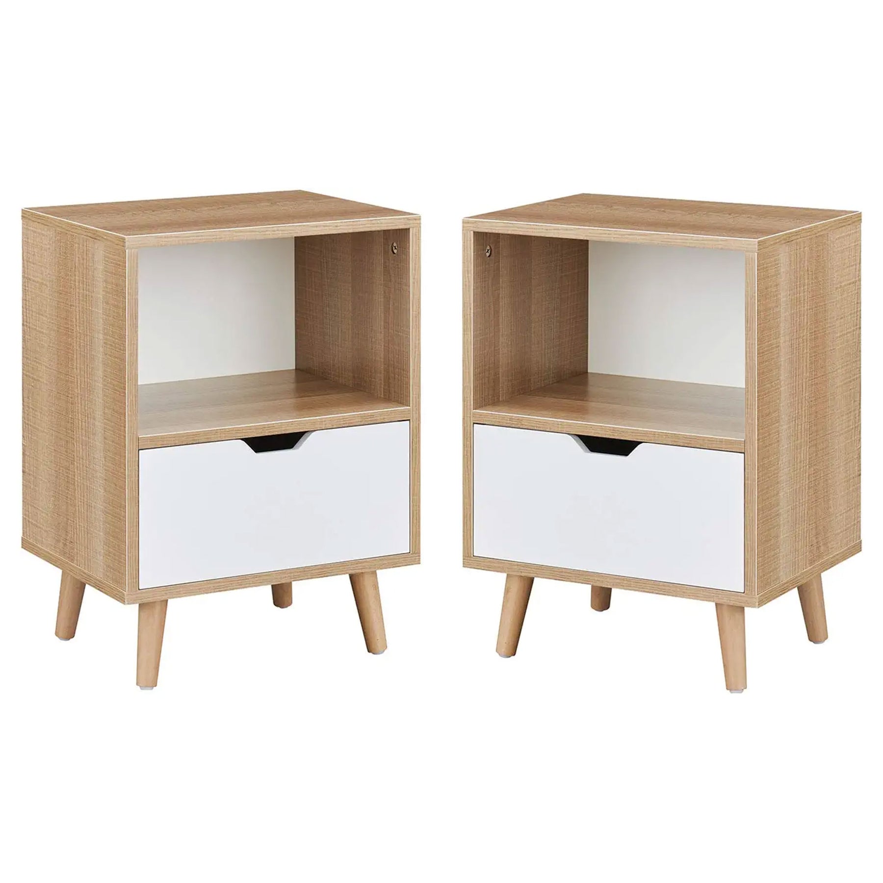 Sweetgo Modern Wooden 2-Tier Nightstand End Table with 1 Drawer, Tan, Set of 2