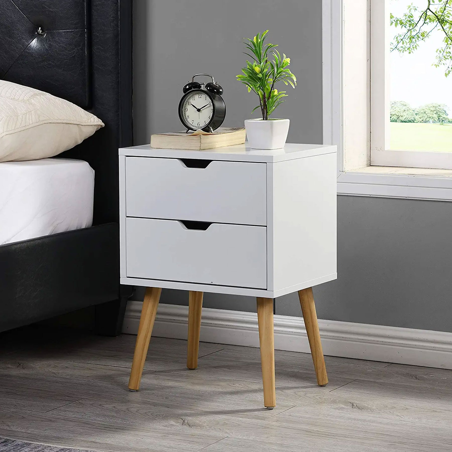 Sweetgo Modern Wooden Nightstand Table with 2 Storage Drawers, White, Set of 2