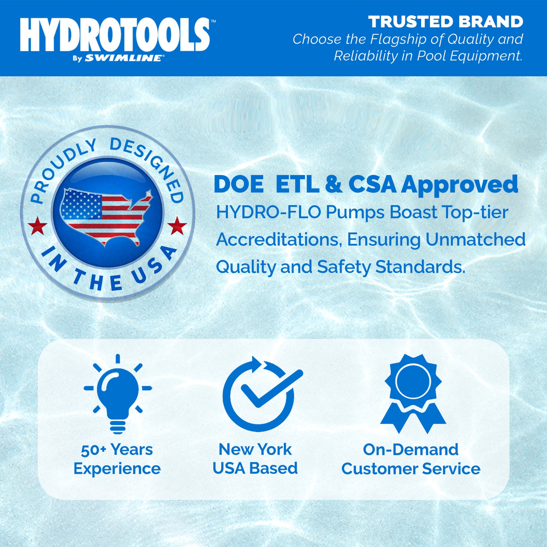 • Powerful 0.75 HP Hydro-Flo Pump featuring a professional-grade impeller motor designed with extra-wide openings for maximum flow, minimal noise, and unbeatable clog prevention