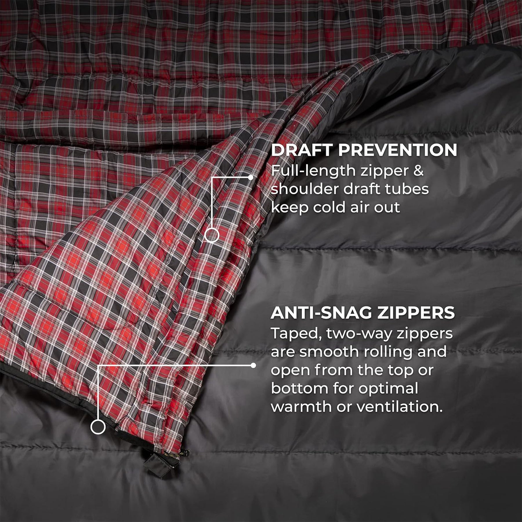 • With dual-layer construction, zipper, and shoulder draft tubes, our sleeping bags effectively trap warm air inside, keeping you snug and comfortable throughout the night
