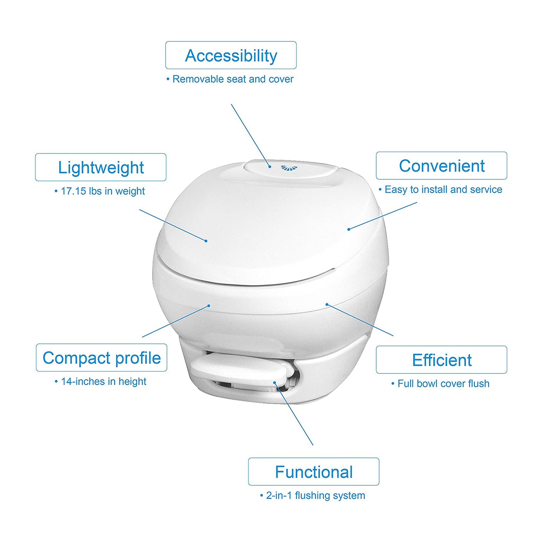 • Reduce your RV's water consumption with this comfortable, stylish, and lightweight RV toilet, suitable for all RV types
