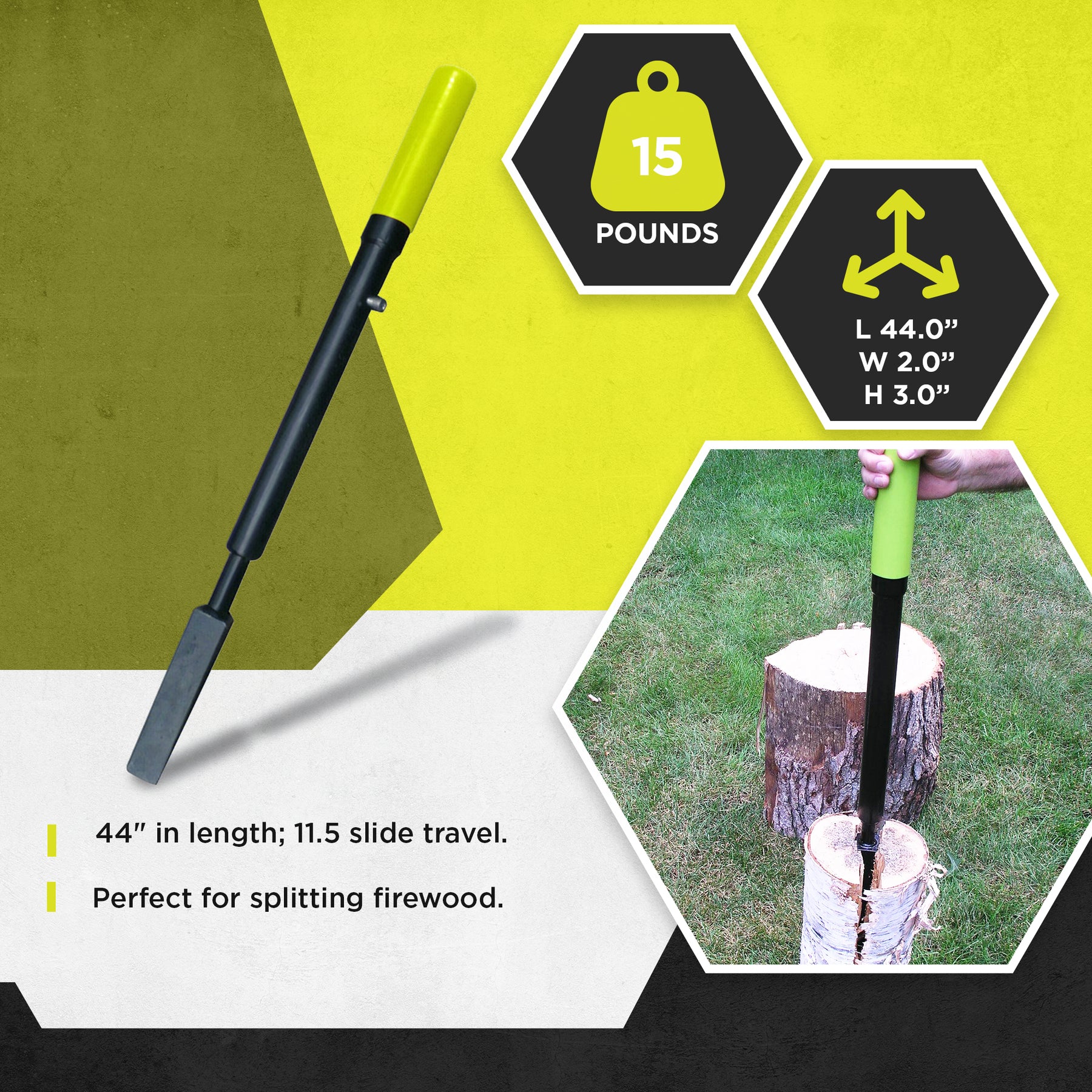 - Powerful 8 pound slide hammer splits logs with ease and has a slide travel of 11.5 inches