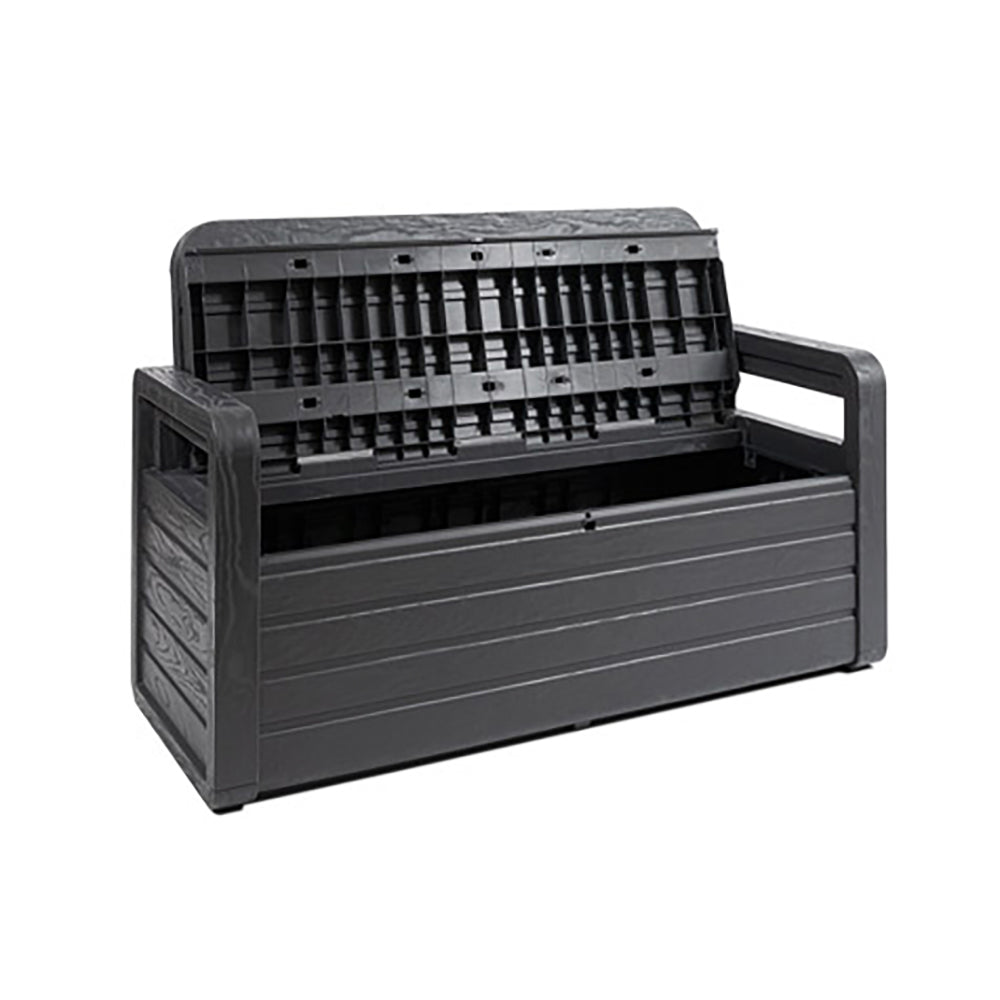 - Large storage bench is a great place to store outdoor patio furniture cushions, outdoor toys, pool accessories, and beach towels