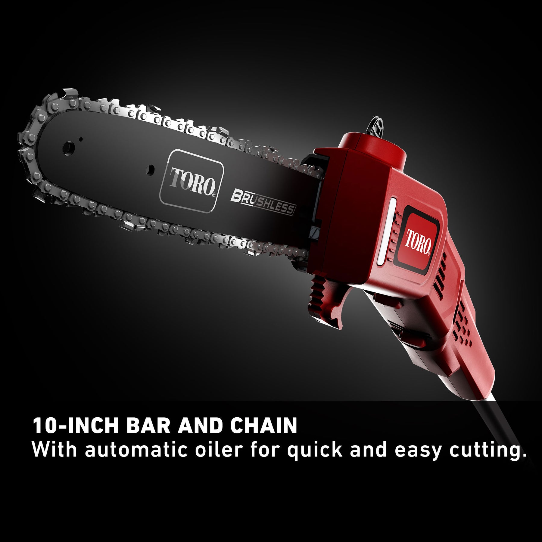 • 10-inch bar and chain with an automatic oiler for quick and easy cutting