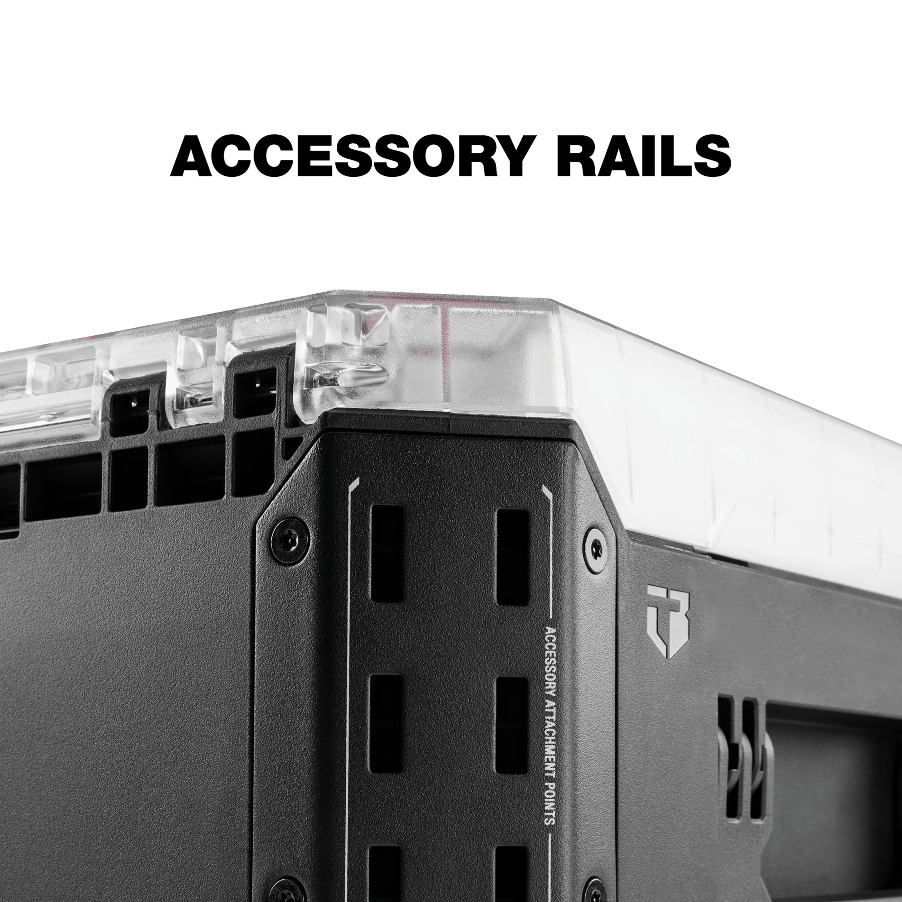 • Accessory rails allow adding quick-release accessories for a fully customizable solution