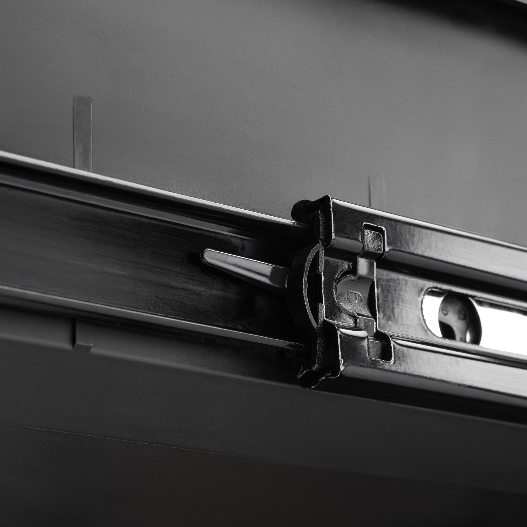 • Auto latching drawer where the mechanism secures drawers when closed to prevent unintentional opening