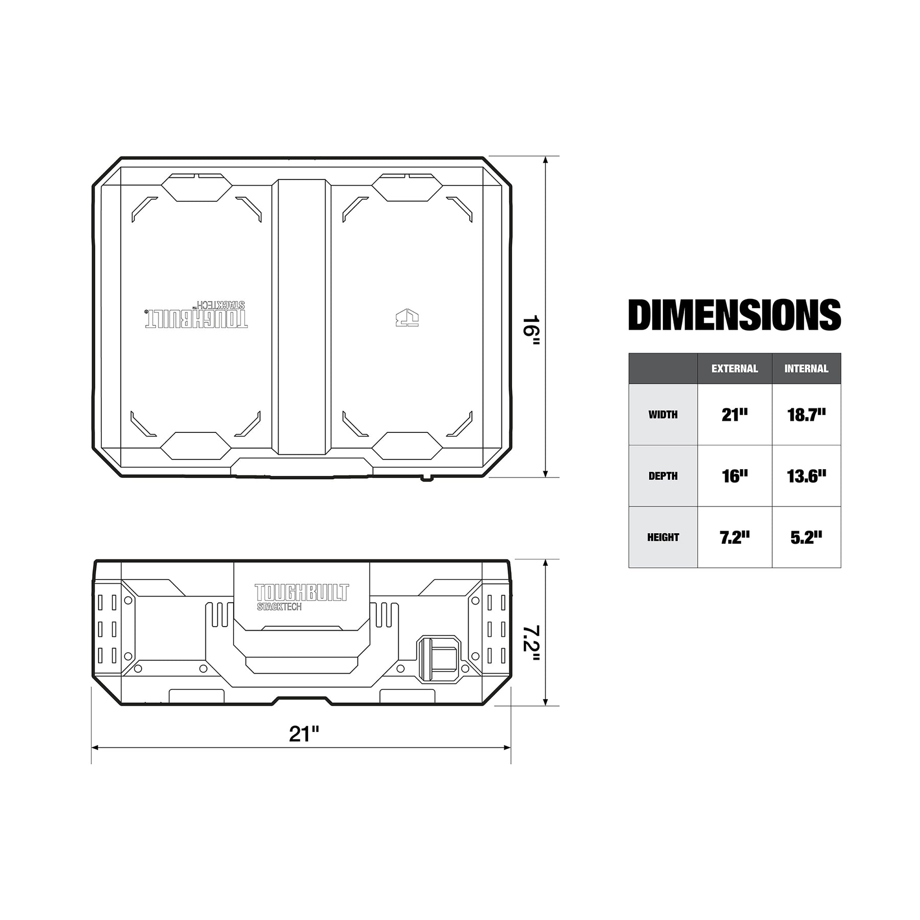 • Dimensions (L x W x H): 16 x 21 x 7.2 inches