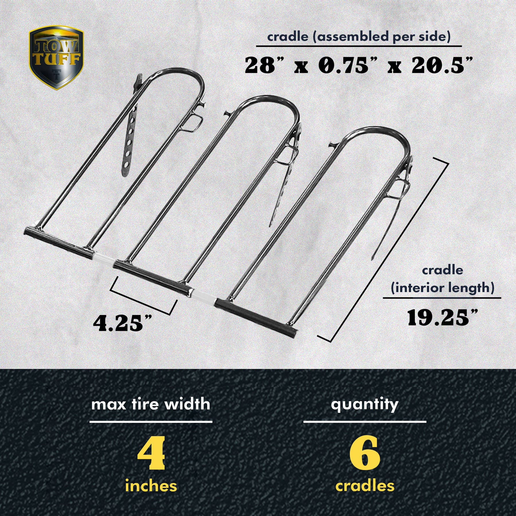 • Each cradle measures 19.25 inches in length, accommodating wide tires up to 4 inches, ensuring a secure fit for your bike during travel