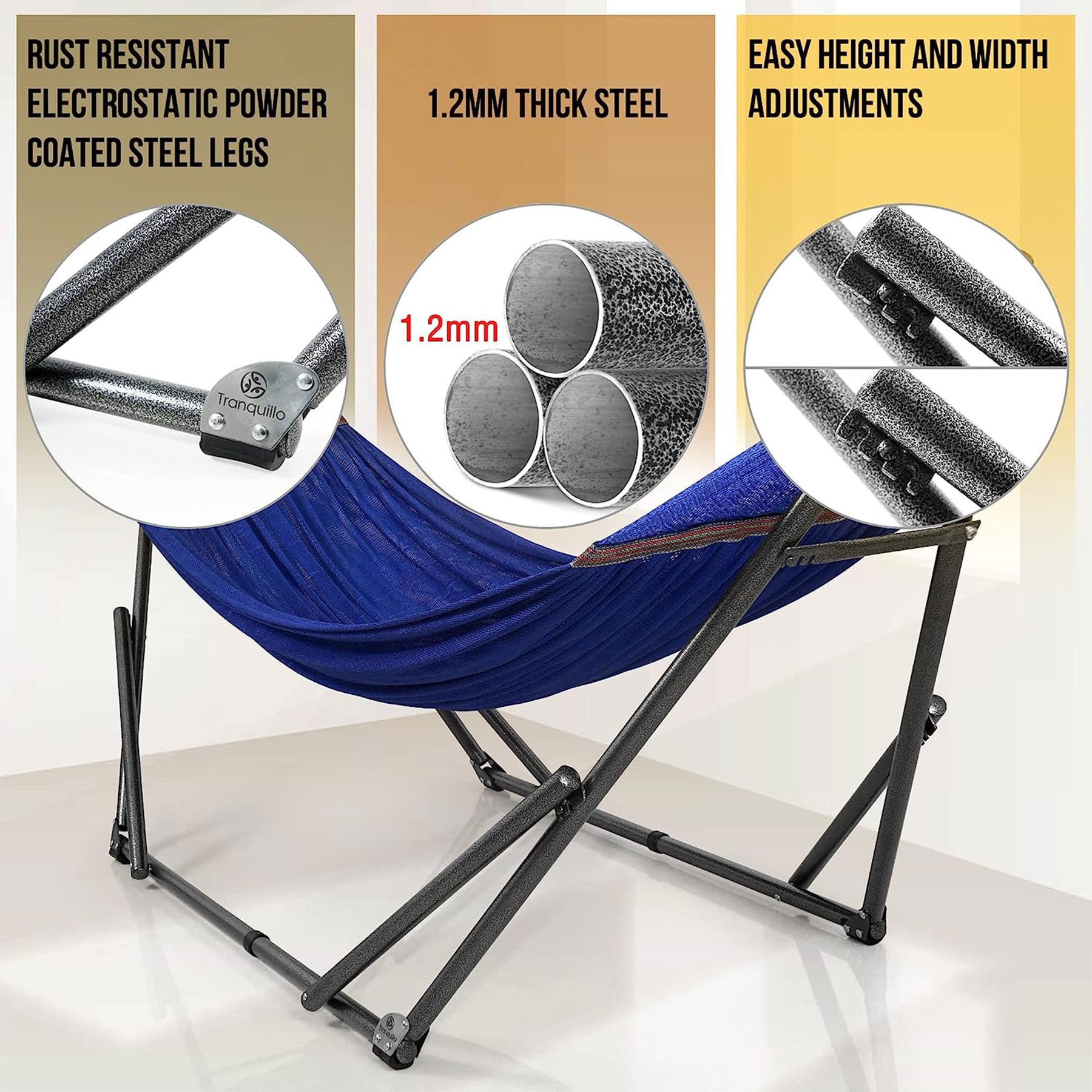 Tranquillo Universal 106.5" Double Hammock w/ Adjustable Stand, Blue (For Parts)