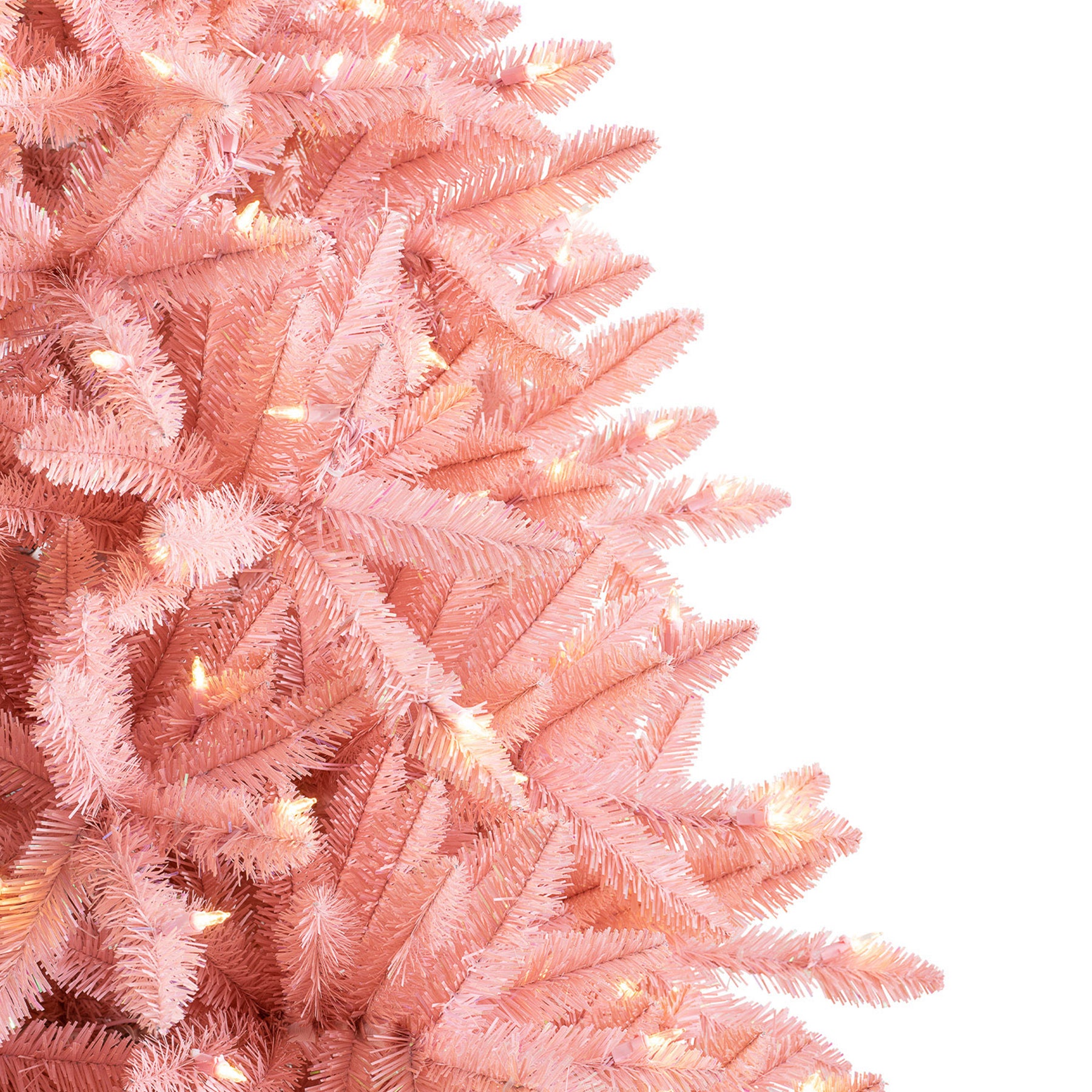 - Densely packed, full luxe silhouette artificial 6-foot tree in a lush pink is an eye-catching addition to your holiday decor