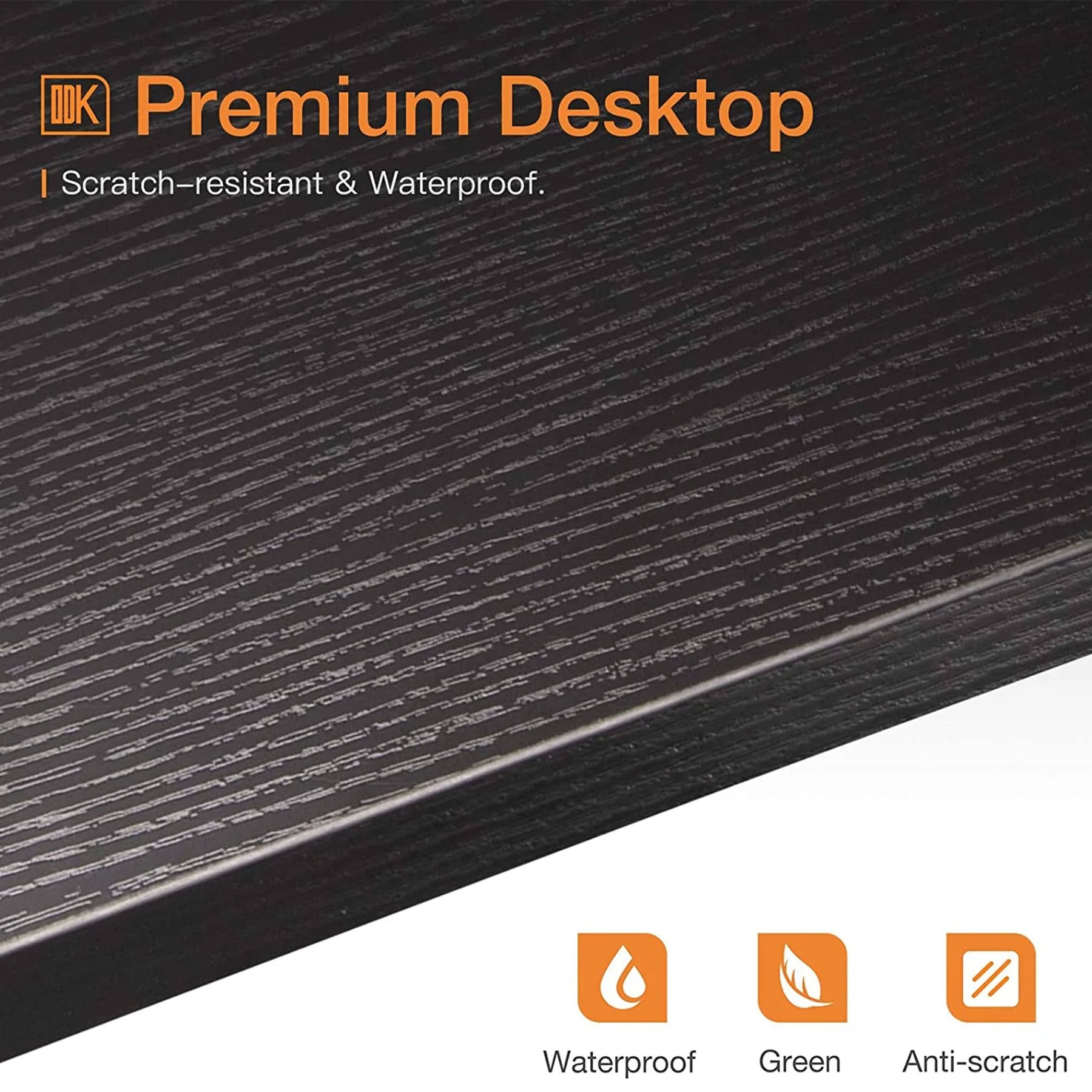 • The desktop is designed with a clean black wood pattern, supported by a black frame that easily brightens up any dorm room, apartment, kid's room, and more