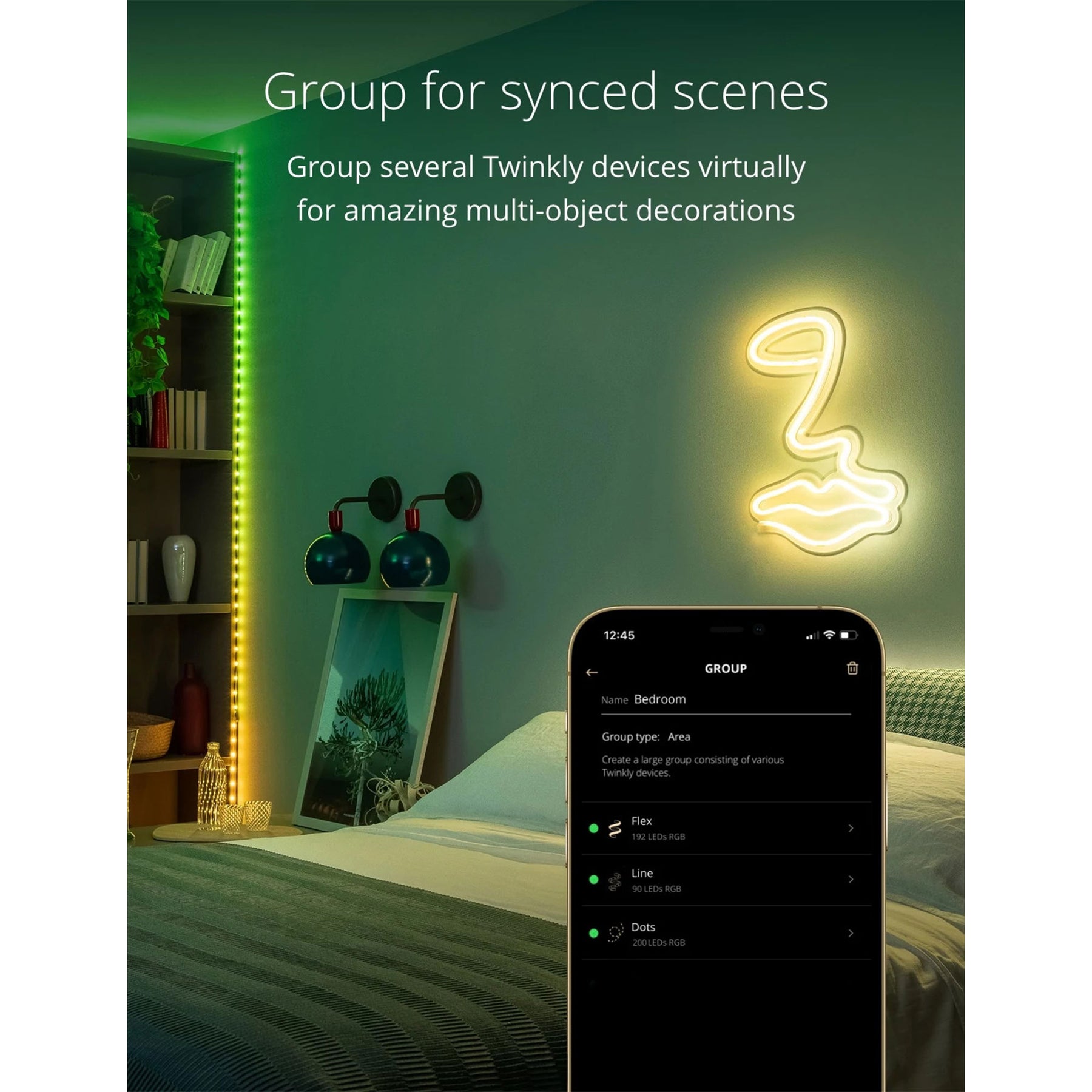 - Group multiple Twinkly devices, set automated playlists, switch lights on and off, apply timers, or dim and adjust brightness