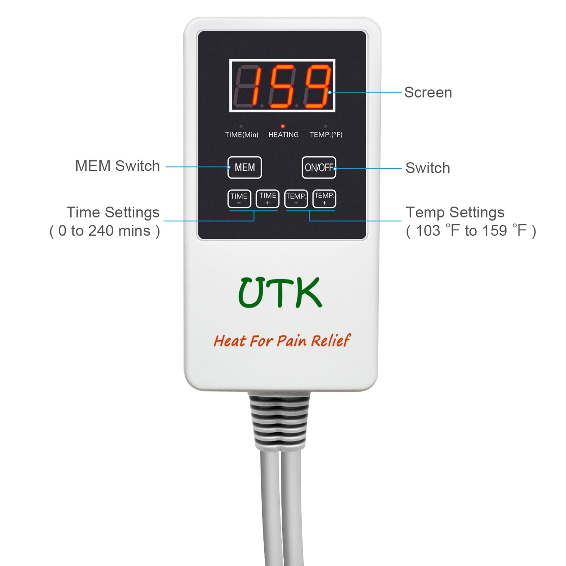 • Smart controller with a memory function, auto shut-off, and heat adjustments that range from 103 to 159 degrees