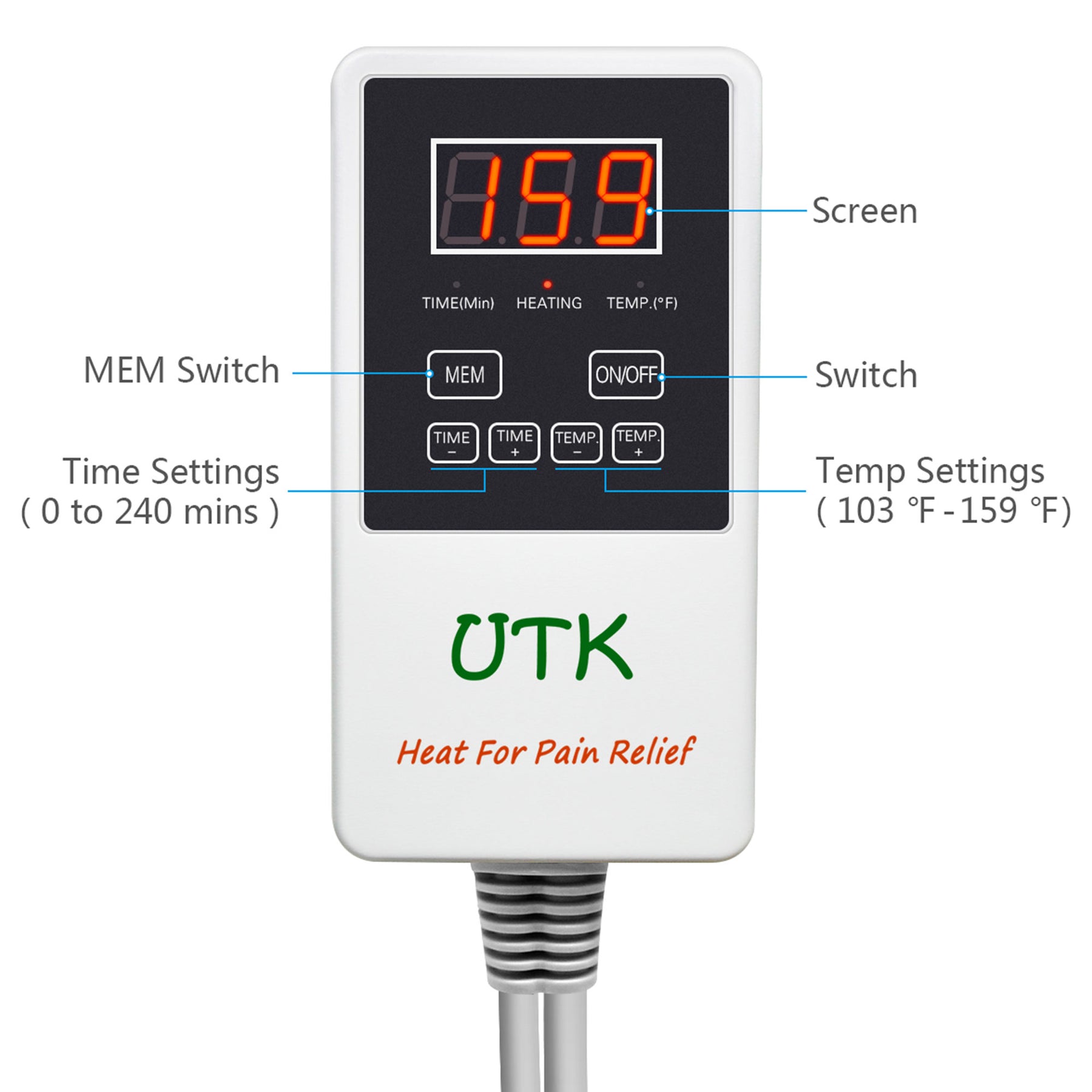 • Controller with a 4-hour timer function and heat adjustments up to 159 degrees Fahrenheit