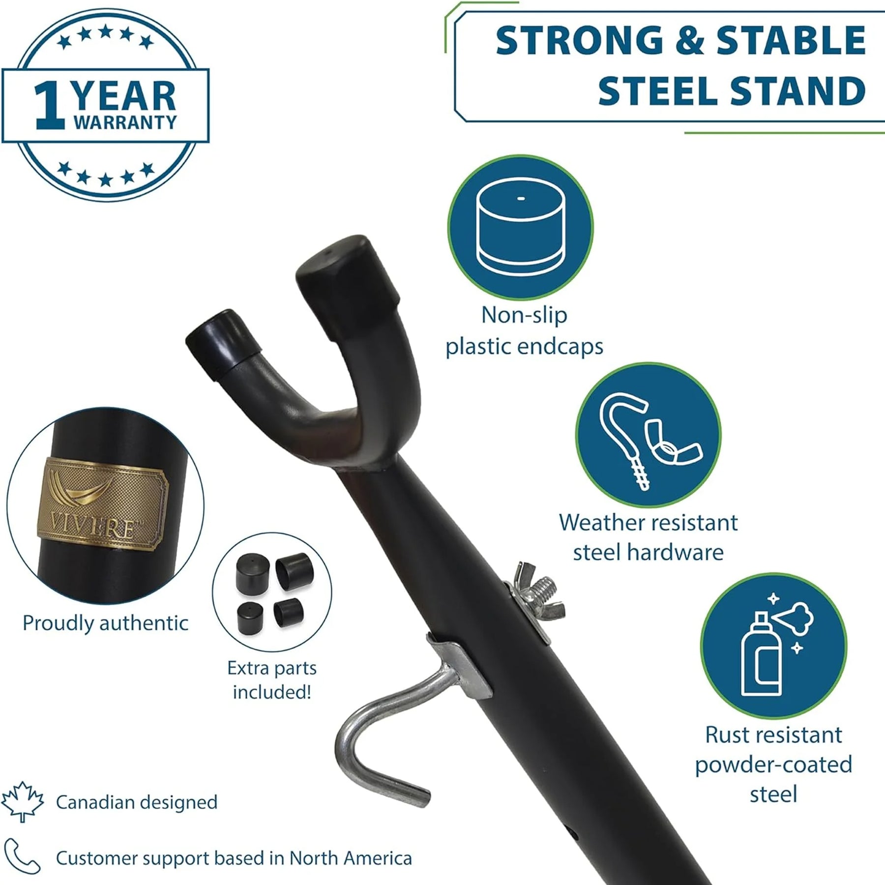 The powder-coated steel stand provides a strong foundation with a rust-resistant finish that holds up in any environment. Engineered for easy setup, the stand assembles in minutes without the need for tools, making it simple to move or reposition anywhere outdoors. Thoughtful details like plastic caps at each end protect surfaces and add a polished look.