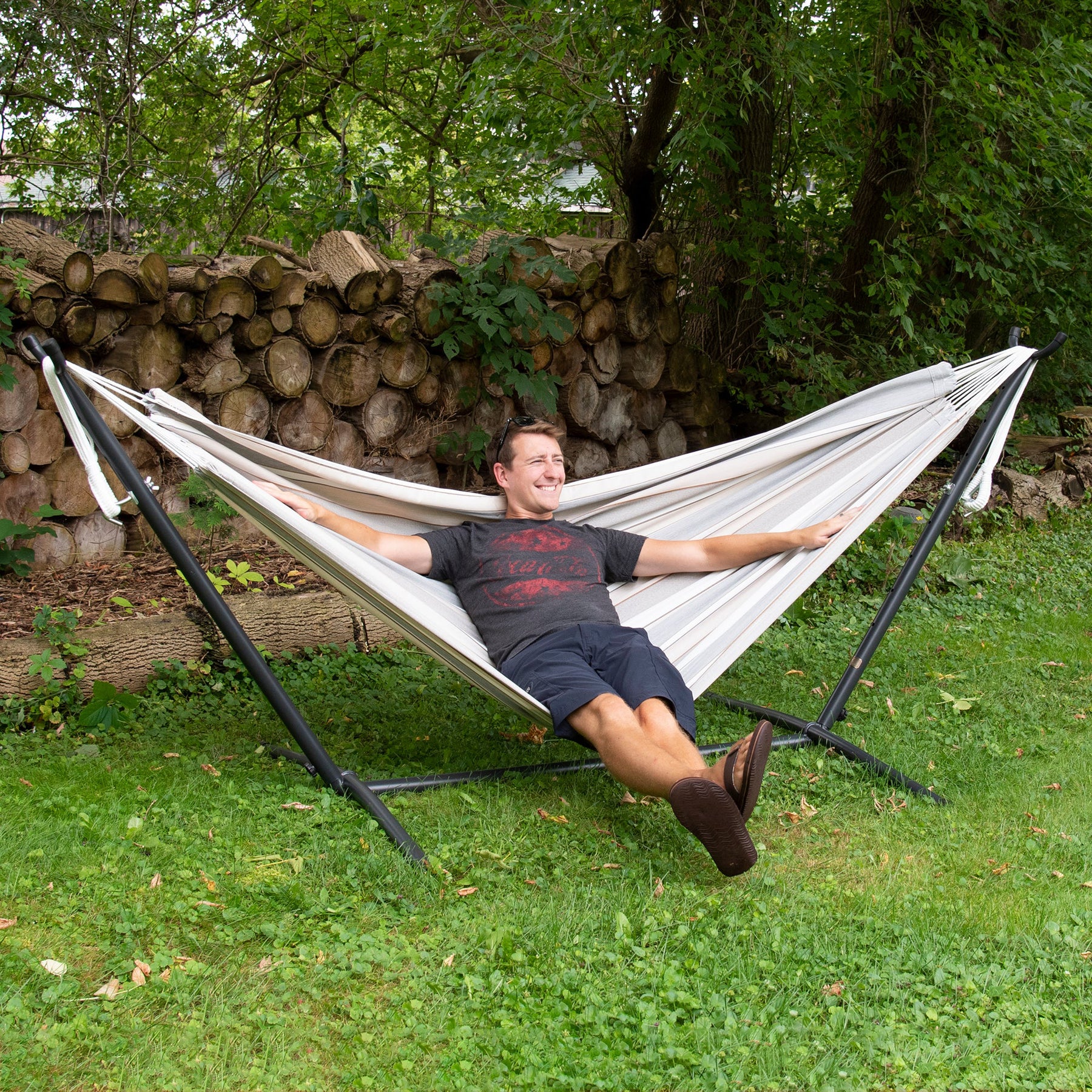 Vivere Double Sunbrella Hammock with Steel Stand, Portable Outdoor Lounge, Dove