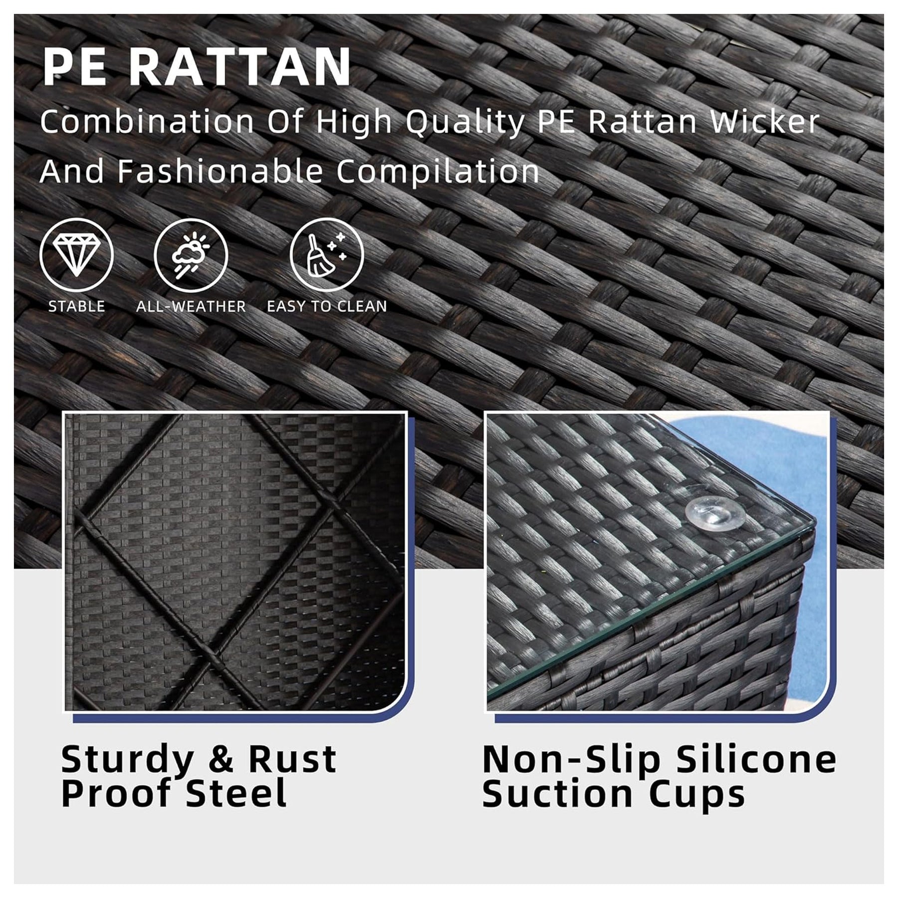 • Hand-woven resin wicker offers high tensile strength and water resistance, which is strong enough to withstand all-weather elements