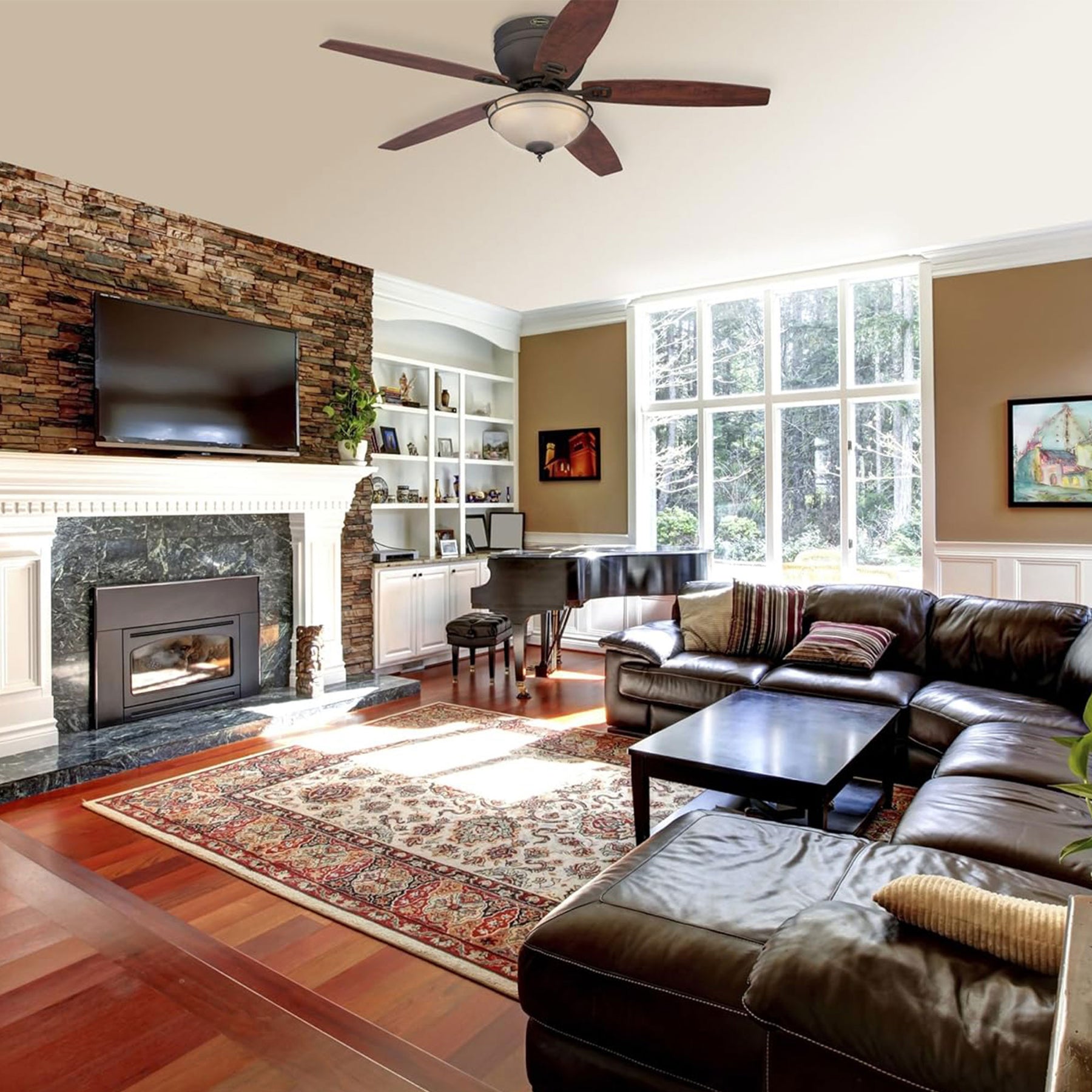 - Enjoy year-round comfort with reversible blades that offer 2 unique finishes, rich walnut and bird’s eye maple, to suit any room decor or style