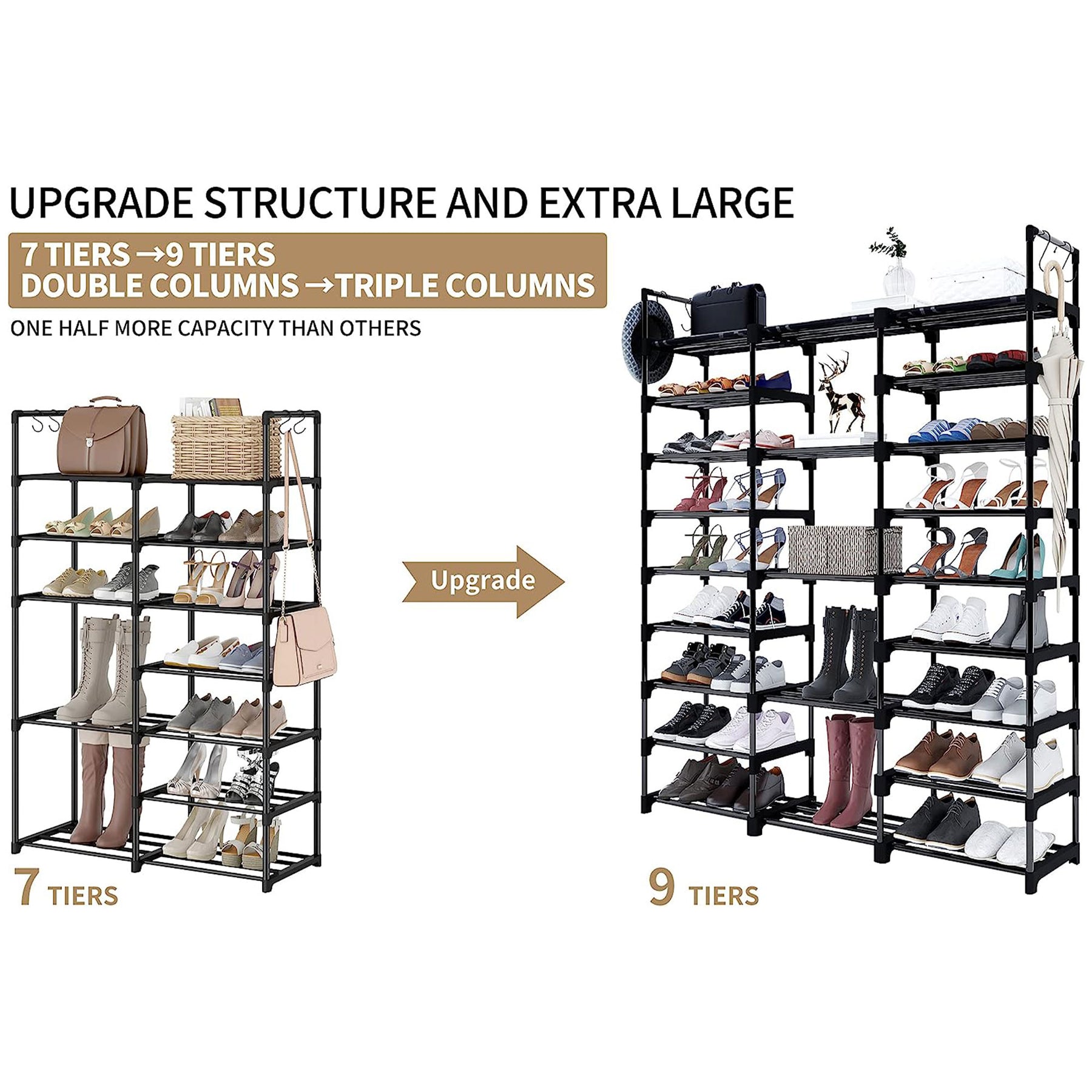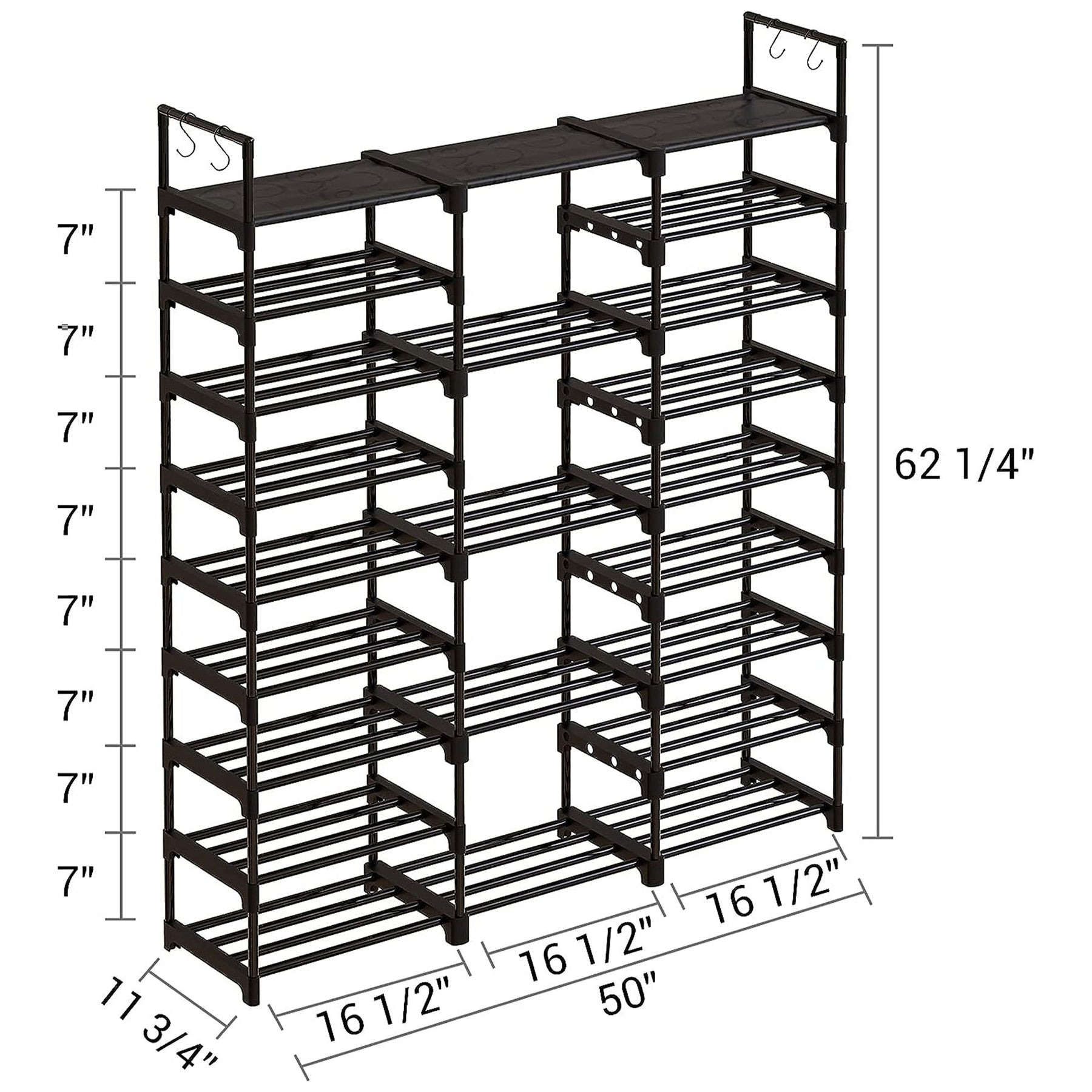 WOWLIVE 9 Tier Shoe Rack, 50 to 55 Pair Shelf Storage Organizer, Black (Used)
