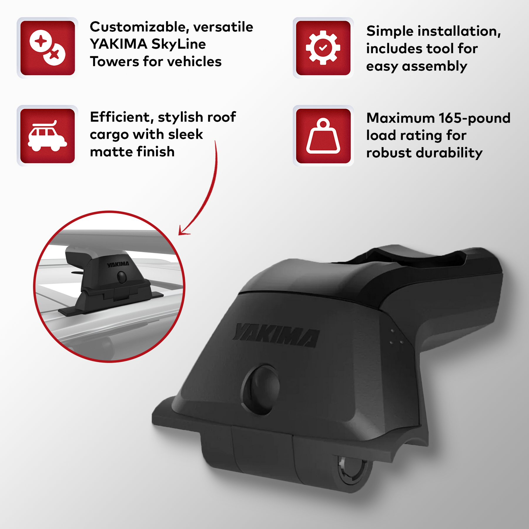 • Unlock a customizable, versatile, and easy-to-use system that will fit your needs and unique gear with the set of 4 YAKIMA SkyLine Towers Roof Rack Towers for Vehicles with Fixed Points